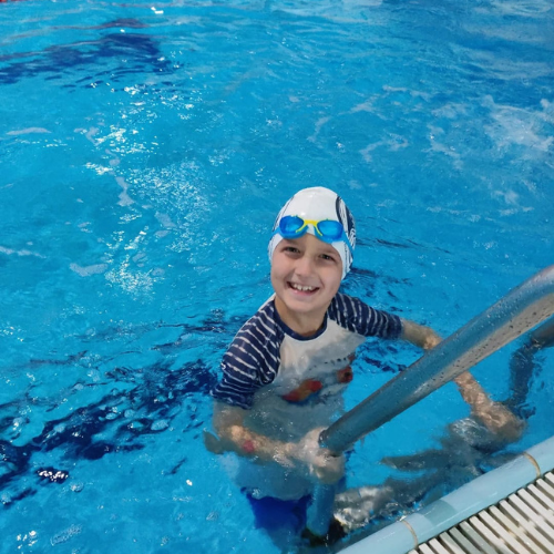 Yüzme öğrenmek için mavi, beyaz ve gri huzurunda ilk adımı at.